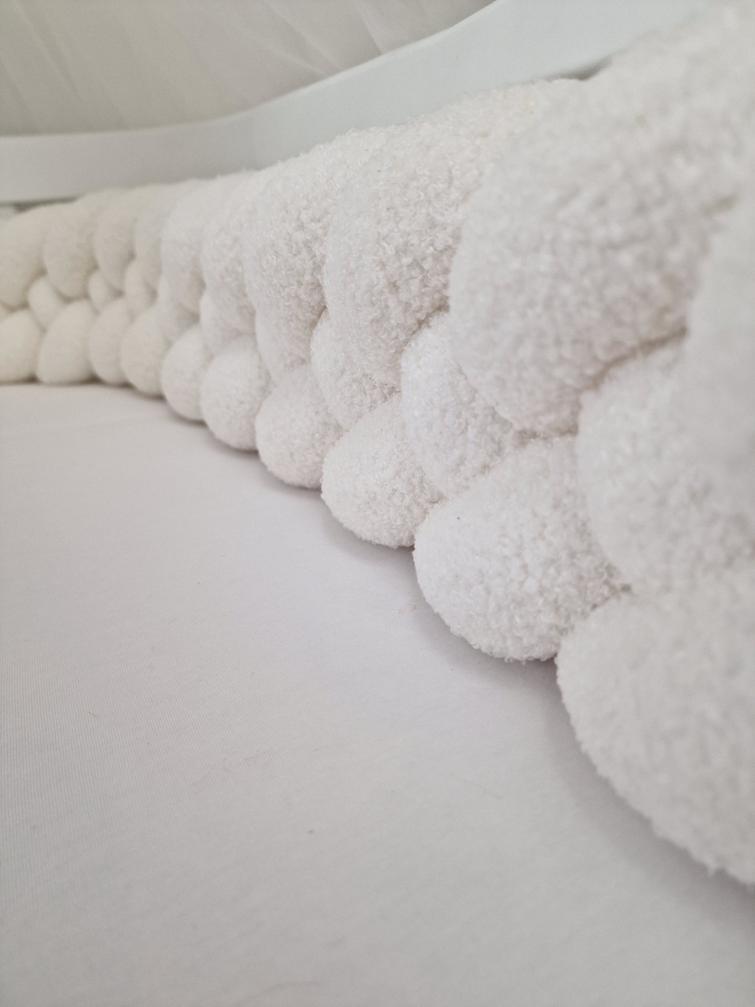 Entièrement personnalisable, la tresse de lit est confectionnée à la main avec des matières douces et moelleuses, elle assure à la fois confort et sécurité dans le lit de votre enfant tout en apportant une touche décorative unique.
