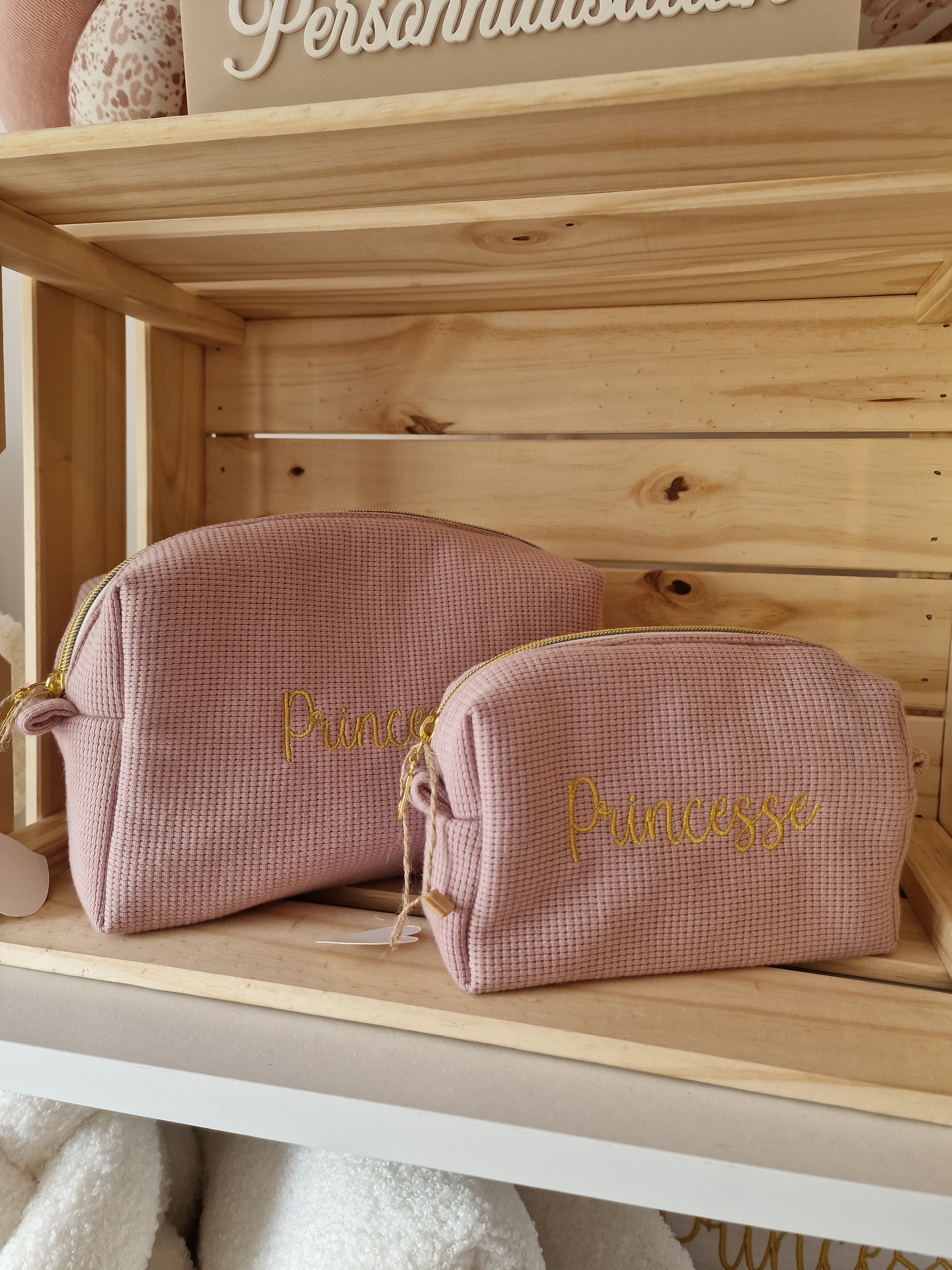 Ensemble Grande et petite trousse de toilette en vieux rose gaufré