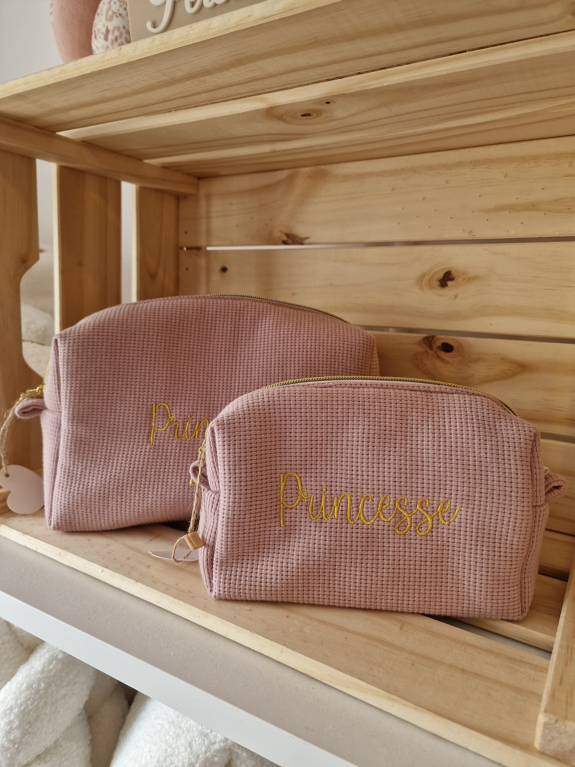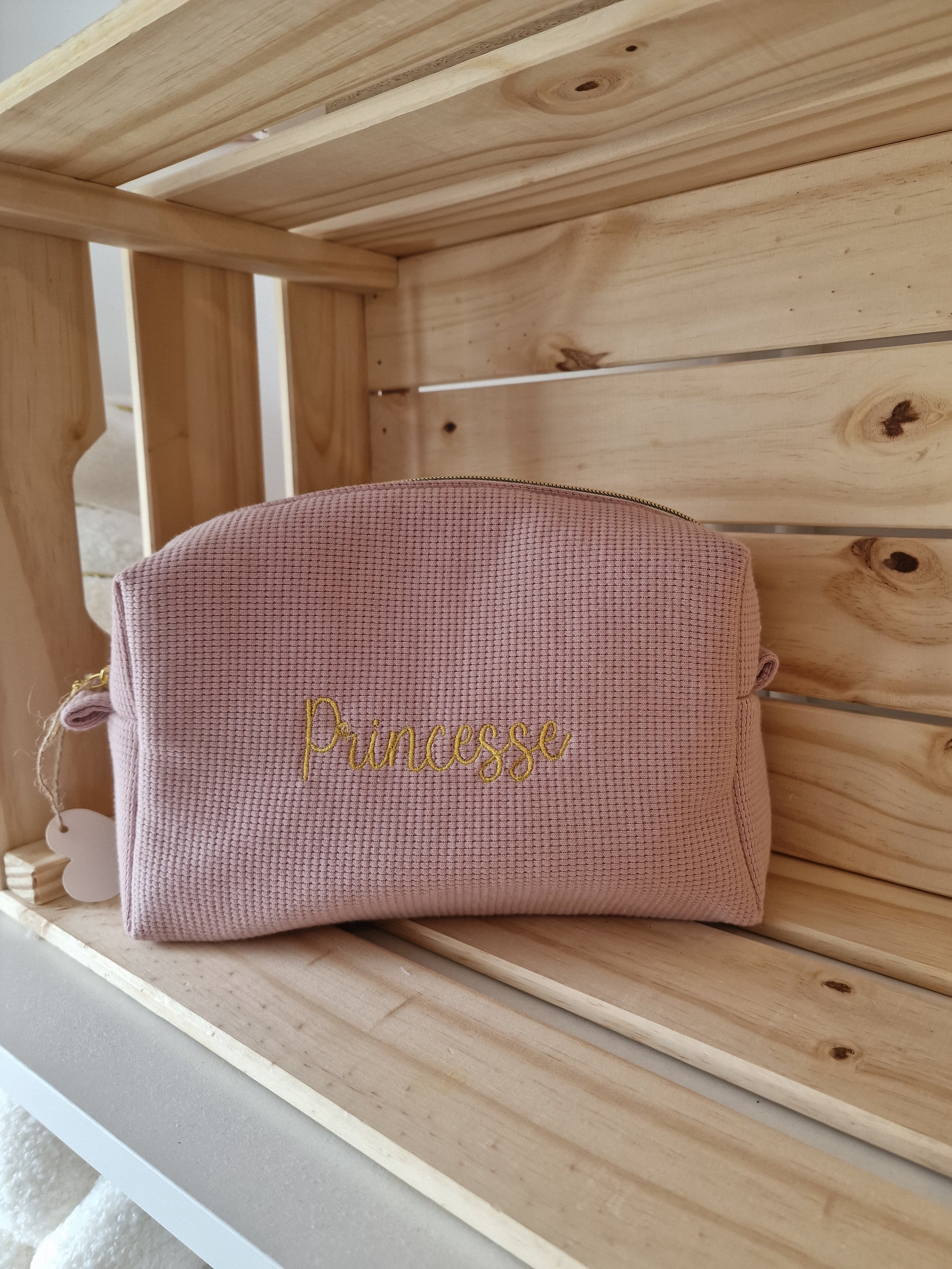 Grande trousse de toilette en vieux rose gaufré