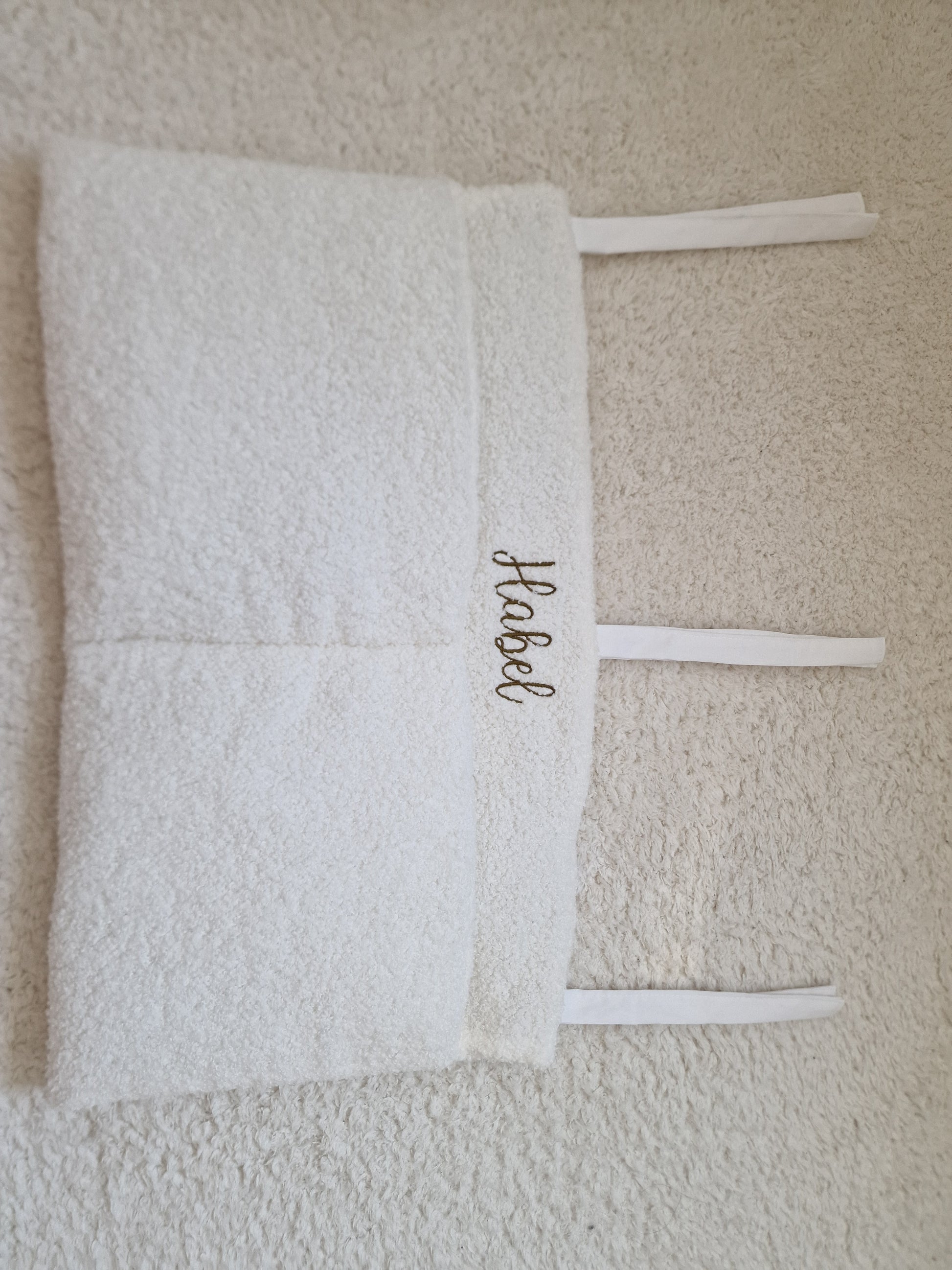 Le range doudou et range pyjama de Babydouceur est un accessoire pensé pour organiser l’espace de sommeil de bébé tout en apportant une touche décorative. Créé avec soin, ce produit permet de ranger le doudou, le pyjama ou même quelques petits jouets de l’enfant dans un espace dédié, généralement conçu pour être suspendu au lit ou à proximité de la table à langer.